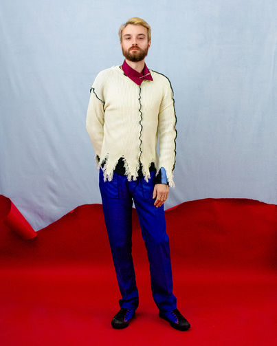 The historicism of previous seasons is reduced to a series of curving seam details, voluminous draping and color settings that contain the echoes or masculine dress codes of the past. Historical utility presents a new possibility for American menswear.